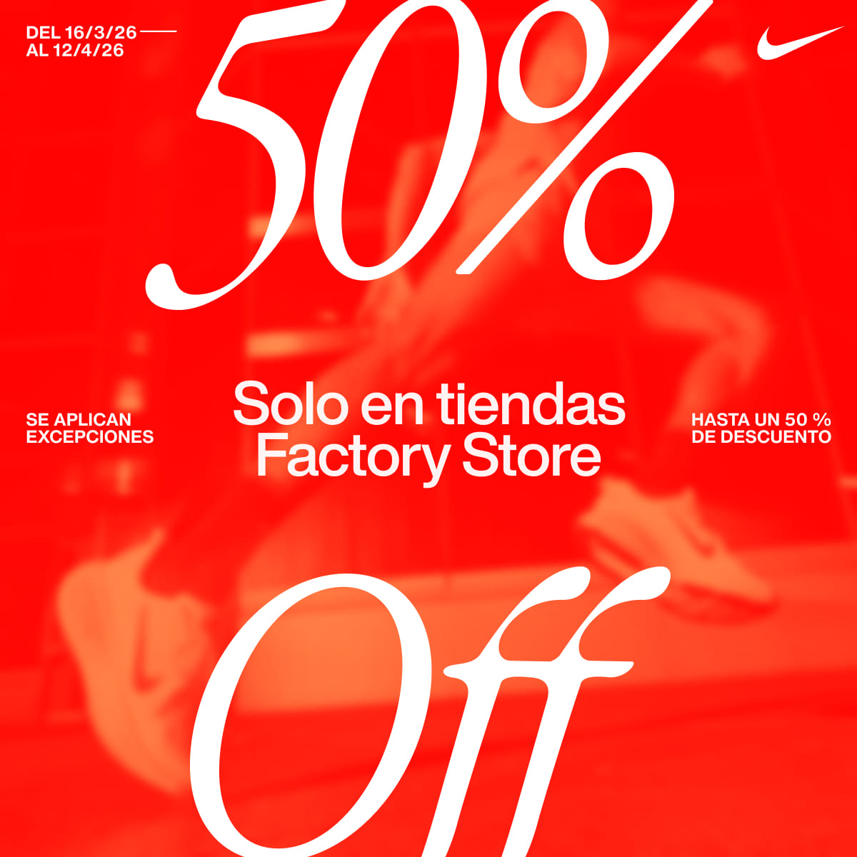 Disfruta de hasta un 50 % de descuento adicional en zapatillas, ropa y accesorios seleccionados*. Consultar al Staff por artículos de esta promo.